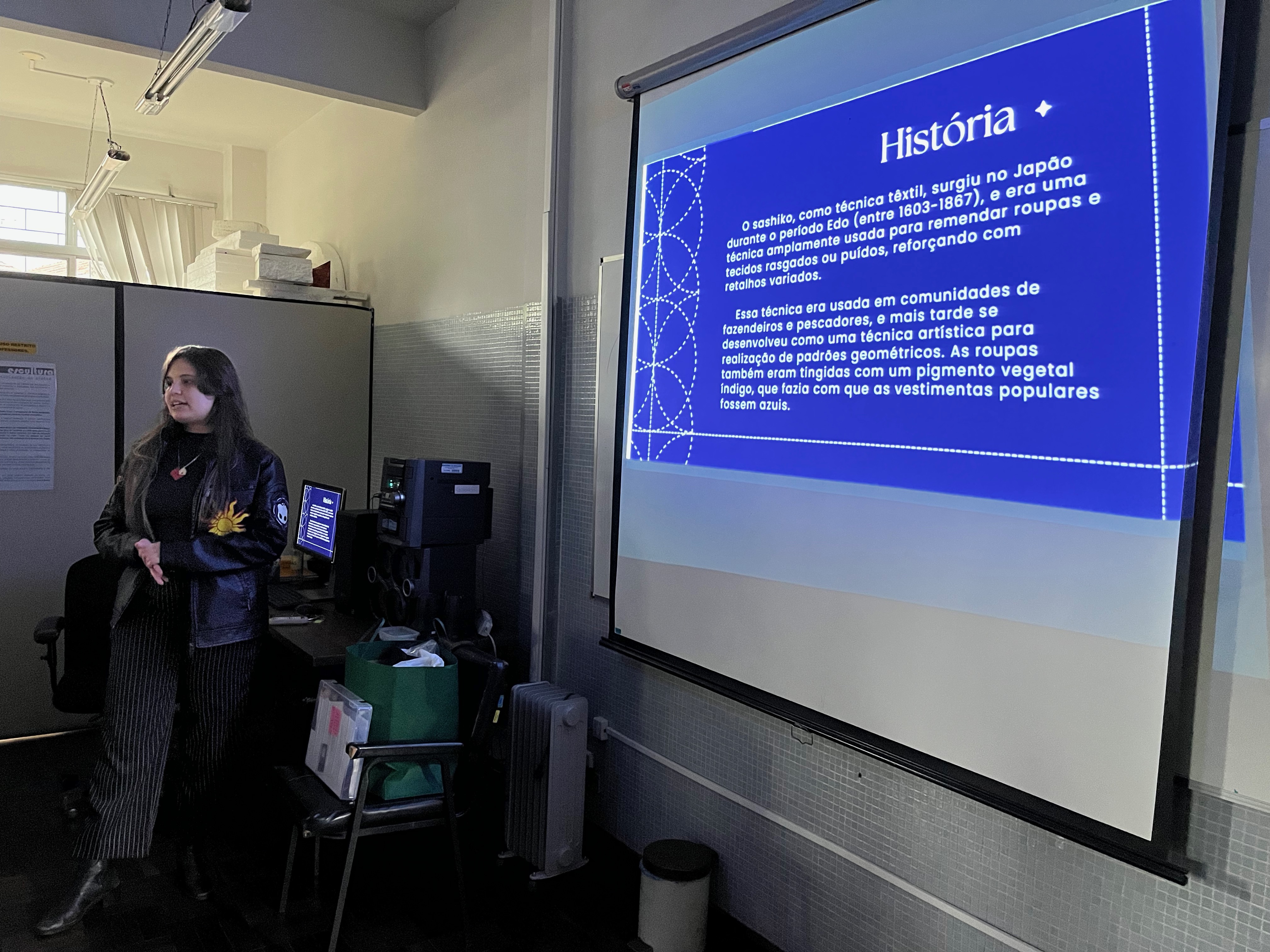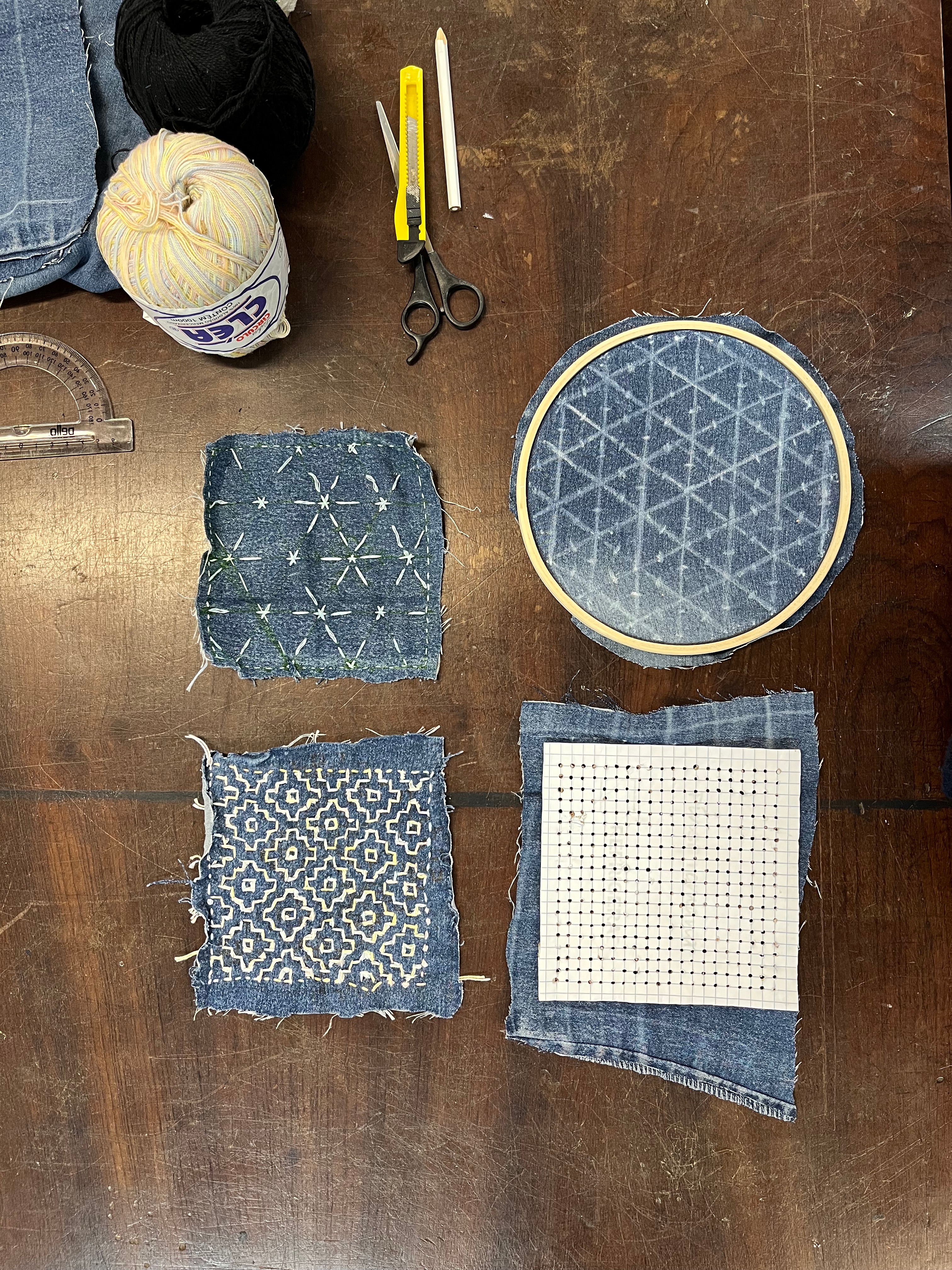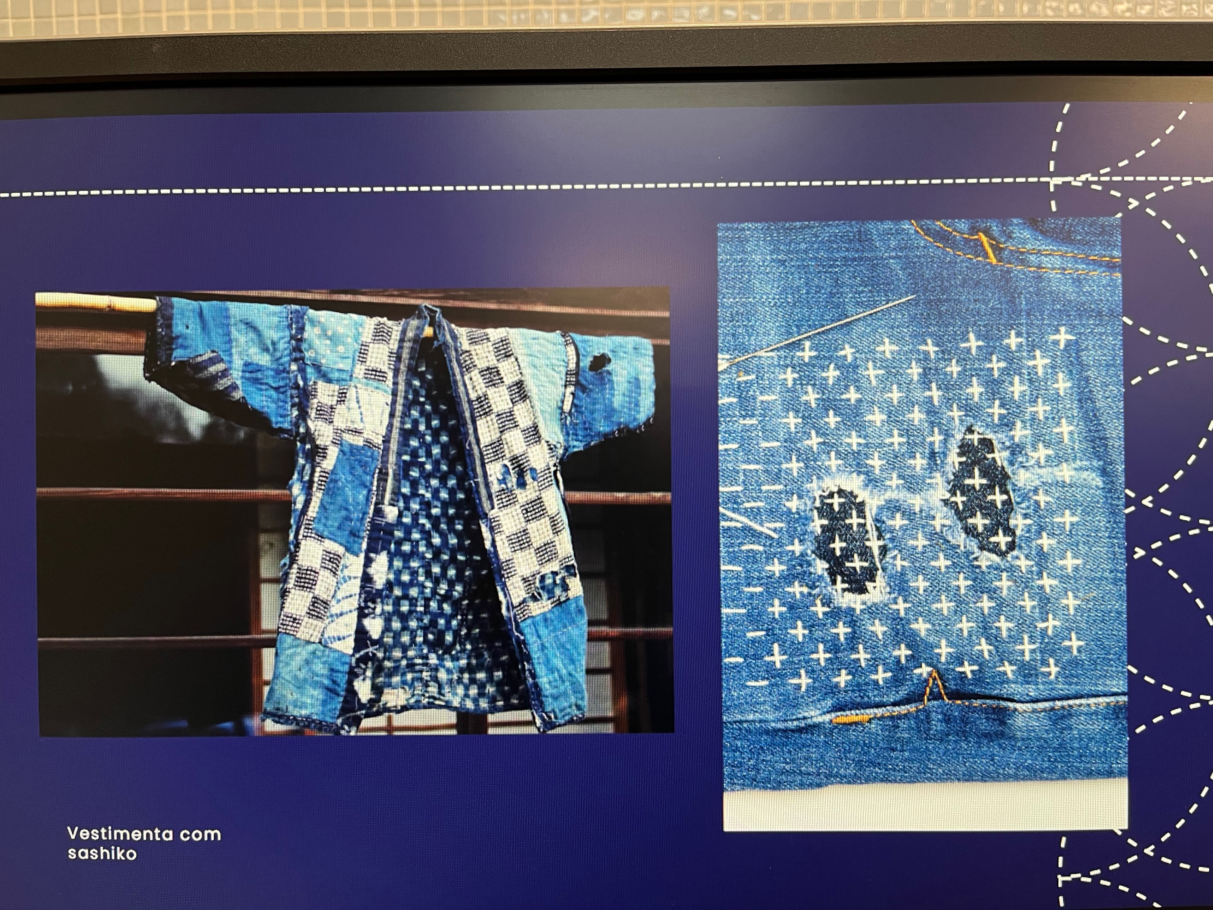 eu estudei e apliquei uma oficina sobre o bordado japonês Sashiko. Aqui, vou trazer